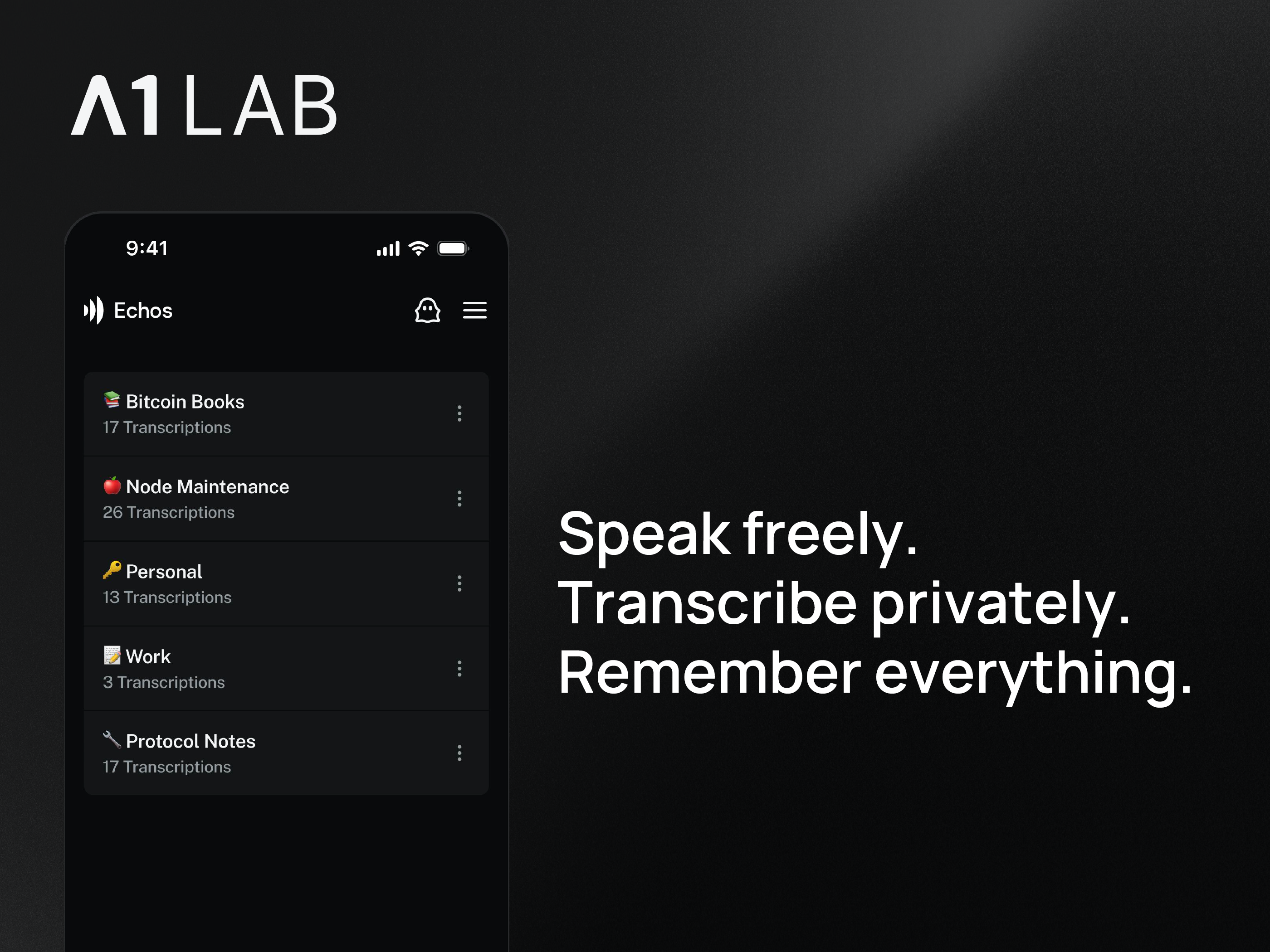 The first product from A1 Lab is Echos, a free, private AI transcription app that lets you record and transcribe speech directly on your device. Echos uses a lightweight AI model, keeping audio and notes private while delivering accurate, multilingual transcription without ever connecting to a server.